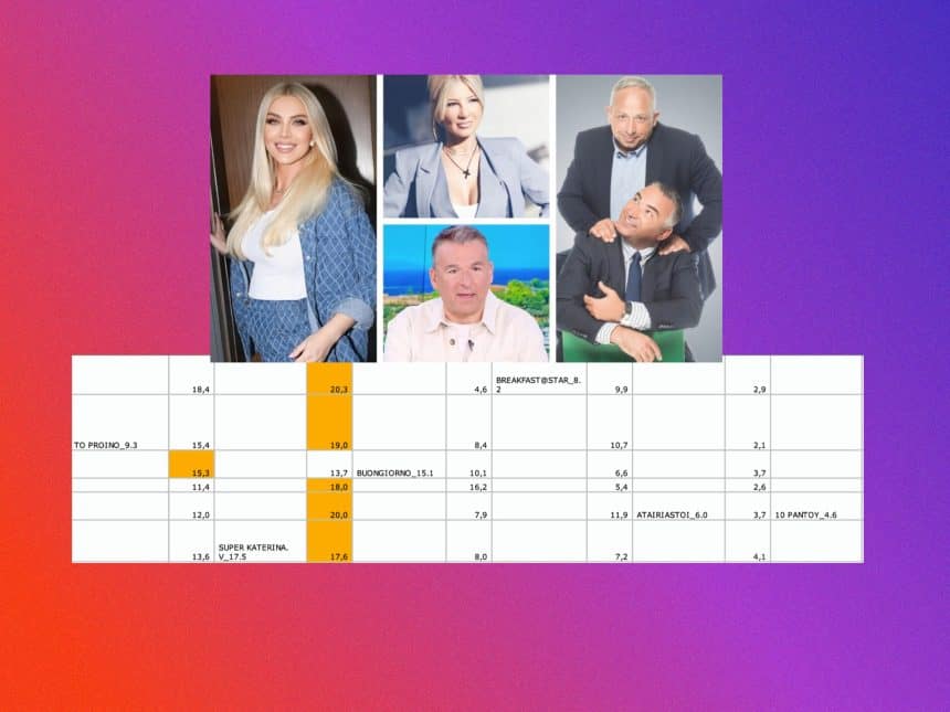 Η χθεσινή μάχη των πρωϊνάδικων είχε ξεκάθαρη νικήτρια. Η Κατερίνα Καινούργιου κρατά την πρωτιά με δυνατά ποσοστά, αφήνοντας πίσω την Φαίη Σκορδά που ακολουθεί – την τελευταία εβδομάδα – σταθερά δεύτερη. Τρίτος ο Γιώργος Λιάγκας, ο οποίος επέστρεψε σε μονοψήφια και προβληματίζει, καθώς η δυναμική του δείχνει να εξασθενεί ή να μοιάζει με “καρδιογράφημα”.
