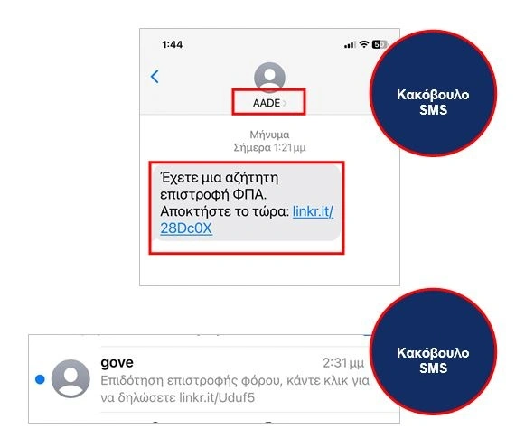Για την προστασία τους, οι πολίτες πρέπει να μην κάνουν click ή tap σε κανένα σύνδεσμο και να διαγράψουν αμέσως το μήνυμα.