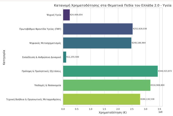 Το μεγαλύτερο ποσοστό, περίπου 24,3%, αφορά την πρόληψη και τις προληπτικές εξετάσεις, ενώ 21% κατευθύνεται σε νέες υποδομές και νοσοκομεία.