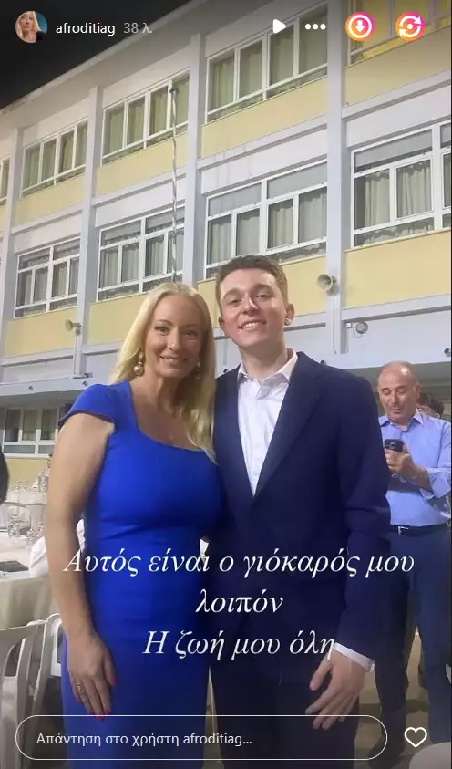 Ειδικότερα, όπως έκανε η ίδια γνωστό μέσα από τα social media, η Αφροδίτη Γραμμέλη έδωσε το παρών στην αποφοίτησή του γιου της που πραγματοποιήθηκε στη Λεόντειο Σχολή της Νέας Σμύρνης. Η ευτυχισμένη μανούλα ανέβασε μερικές χαρακτηριστικές εικόνες, σαν ιστορία, για να μοιραστεί τη χαρά με τους ακολούθους της.