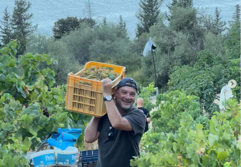 Σε φωτογραφίες που ανέβασε στο ινσταγκραμ φαίνεται να απολαμβάνει όλη τη διαδικασία, από το μάζεμα των σταφυλιών στο αμπέλι μέχρι το οινοποιείο.
