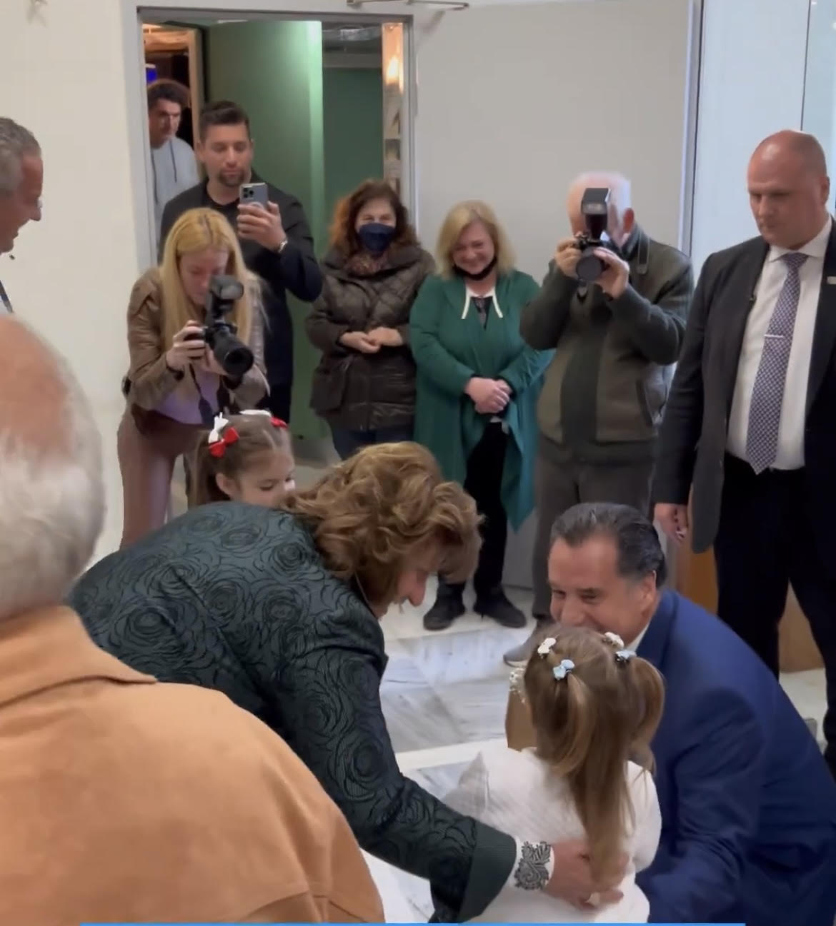 Εντάξει είναι γνωστό πως έχει αδυναμία στο γυναικείο φύλο αλλά αυτή η κοπελιά τον τρέλανε από το πρώτο λεπτό. Ο λόγος για τον Άδωνι Γεωργιάδη που κατά την είσοδο του σε εκδήλωση στο δημαρχείο Χολαργού τον υποδέχθηκε μία πιτσιρίκα δίνοντάς του ένα μπουκέτο λουλούδια.