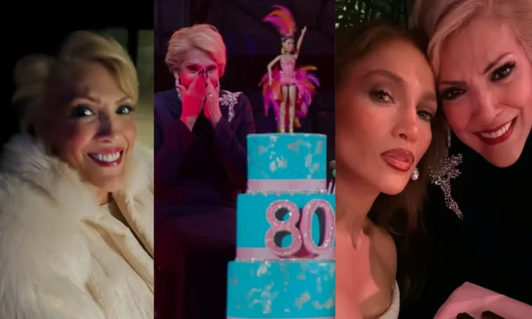 Η Τζένιφερ Λόπεζ δεν θα μπορούσε να λείπει από αυτή την τόσο ξεχωριστή στιγμή και μοιράστηκε με τους διαδικτυακούς της φίλους στιγμιότυπα από το πάρτι. Ανάμεσα στις εικόνες που ξεχώρισαν ήταν η εντυπωσιακή, τριώροφη γαλάζια τούρτα με τον αριθμό 80, αλλά και ο χορός της μητέρας της, που έκλεψε τις εντυπώσεις.