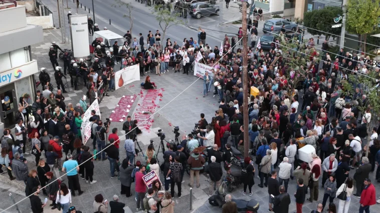Συγκέντρωση διαμαρτυρίας το απόγευμα της Τετάρτης (2/4) έξω από το αστυνομικό τμήμα των Αγίων Αναργύρων για τη γυναικοκτονία της 28χρονης. Αρκετοί σύλλογοι απηύθυναν κάλεσμα προκειμένου να διαμαρτυρηθούν για το θάνατο της Κυριακής από τον πρώην σύντροφό της. Έξω από το αστυνομικό τμήμα συγκεντρώθηκαν αρκετές γυναίκες από συλλόγους γυναικών από τους Αγίους Αναργύρους, το Καματερό, το Ίλιον και την Πετρούπολη. Ανάμεσα στο πλήθος βρίσκονται και στελέχη της Νέας Αριστεράς, όπως ο Πάνος Σκουρλέτης, ο Νάσος Ηλιόπουλος, η Σία Αναγνωστοπούλου και η Χαρά Καφαντάρη.