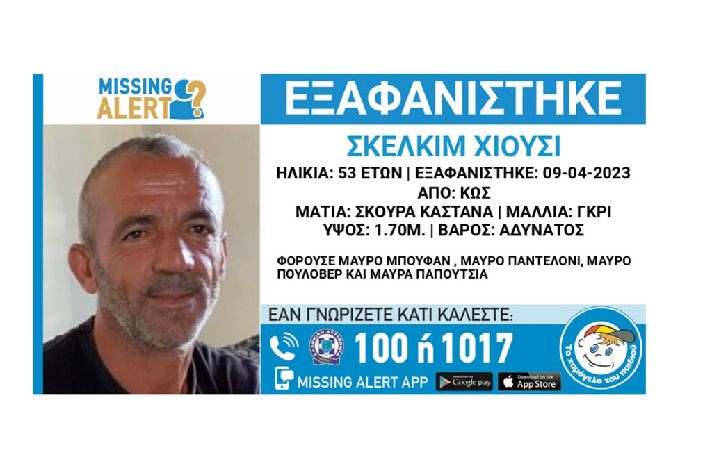 Συναγερμός για την εξαφάνιση του 53χρονου Σκελκίμ Χιουσί από την Κω -αλβανικής καταγωγής- έχει σημάνει στις Αρχές.
