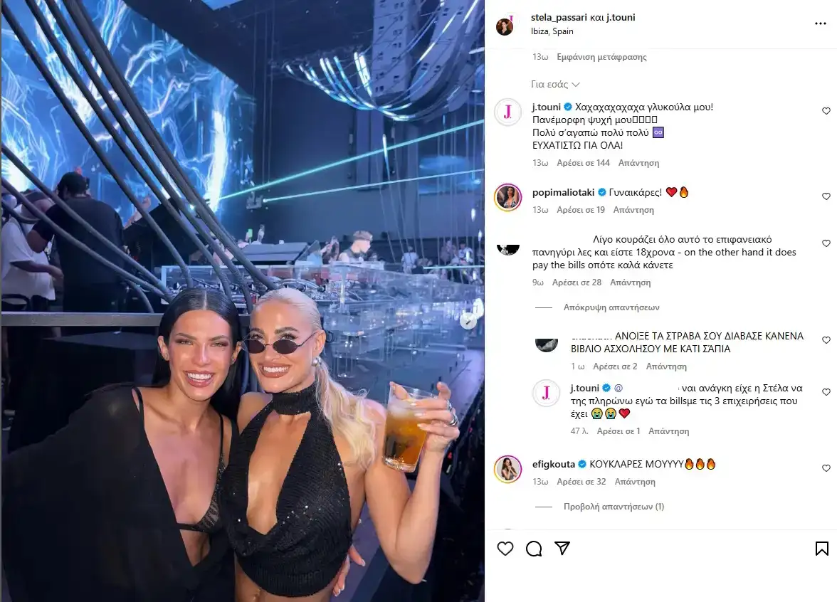 Ούτε η Στέλλα Πάσσαρη, ούτε η Ιωάννα Τούνη δε θέλησαν να απαντήσουν στα περισσότερα και στα πιο προβλητικά σχόλια που τους έκαναν οι χρήστες του Instagram.
