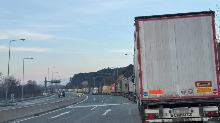 Στον σταθμό διέλευσης στην Εξοχή Δράμας αντίθετα, το μπλόκο για τα φορτηγά έκλεισε ξανά, από τις 12 το μεσημέρι σήμερα, έπειτα από την προσωρινή παύση του αποκλεισμού των δρόμων τις προηγούμενες ημέρες, που είχε αποφασιστεί για να διευκολυνθεί η κίνηση των εκδρομέων των γιορτών.