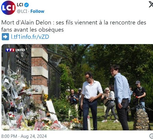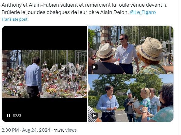 Σύμφωνα με το AFP, τα δύο αδέρφια – το ένα γεννήθηκε το 1964 από τον γάμο του Γάλλου ηθοποιού με την Νάταλι Ντελόν και το άλλο το 1994 από τη σχέση του με τη Rosalie van Breemen – συναντήθηκαν με θαυμαστές του Αλέν Ντελόν στις πύλες της ιδιωτικής κατοικίας, λίγο πριν από την κηδεία.