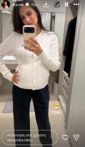 Παράλληλα, η Αλεξάνδρα Νίκα παραμένει ενεργή στα μέσα κοινωνικής δικτύωσης, όπου συχνά μοιράζεται στιγμές από την καθημερινότητά της. Πρόσφατα, δημοσίευσε μια φωτογραφία από τον έβδομο μήνα της εγκυμοσύνης της, λίγο πριν από έξοδό της, δείχνοντας να απολαμβάνει αυτή την ξεχωριστή φάση της ζωής της.