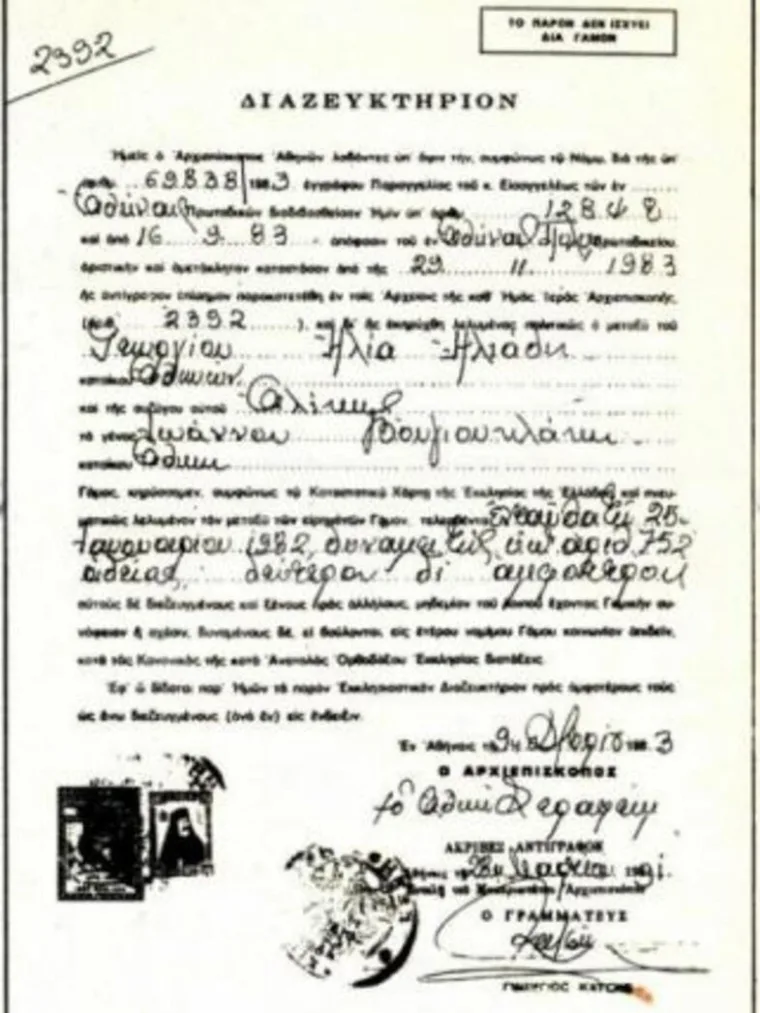 Ο μυστικός γάμος τους και η αγάπη που τους έδεσε, μέχρι το τέλος της ζωής της Ελληνίδας σταρ. «Σας την έσκασα», είχε πει η Αλίκη Βουγιουκλάκη σε συνέντευξή της στο «Ενώπιος Ενωπίω», αποκαλύπτοντας τον μυστικό γάμο της με τον Κύπριο επιχειρηματία, Γιώργο Ηλιάδη. Είχε ήδη χωρίσει και μέσω της τηλεοπτικής της συνέντευξης, έμαθαν ότι παντρεύτηκε κρυφά, ο γιος της, Γιάννης, η μητέρα της, Έμυ και τα αδέρφια της… Σύμφωνα με το διαζευκτήριο που εξεδόθη στις 9 Δεκεμβρίου του 1983,και το οποίο λέει: «Σύμφωνα με τη 12848 απόφαση του πολυμελούς πρωτοδικείου Αθηνών ,ο μεταξύ του Γεωργίου Ηλία Ηλιάδη ,κατοίκου Αθηνών ,και της συζύγου αυτού Αλίκης ,το γένος Ιωάννου Βουγιουκλάκη ,κατοίκου Αθηνών ,ο γάμος εκηρύχθει λελυμένος» Ο γάμος έγινε στις 25 Ιανουαρίου του 1982 στο εκκλησάκι του αγίου Ελευθερίου δίπλα στη Μητρόπολη (κατά ομολογία της ίδιας το 1993 στην εκπομπή του Νίκου Χατζηνικολάου, ενώπιος ενωπίω) με άκρα μυστικότητα. Για τον λόγο αυτό, η άδεια γάμου εξεδόθη από την ενορία του αγίου Παντελεήμονα Αχαρνών!