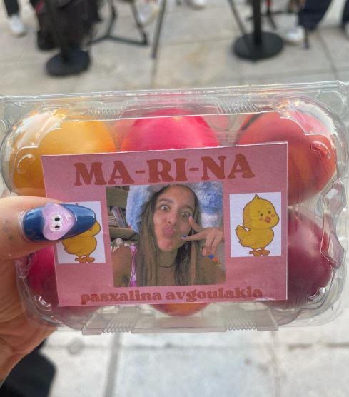- Η Μαρίνα Σάτι μας δείχνει τα βαμμένα αυγά με την επωνυμία της αλλά και την φωτογραφία της, που προφανώς τα ετοίμασαν οι συνεργάτες της!