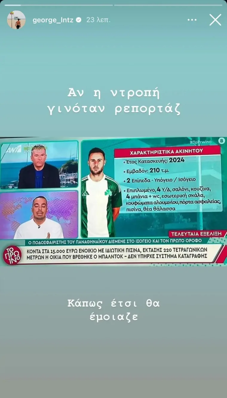 Την άποψη του για το ρεπορτάζ της εκπομπής Πρωινό σχετικά με το σπίτι που διέμενε ο αείμνηστος Τζορτζ Μπάλντοκ, θέλησε να μοιραστεί ο Γιώργος Λέντζας μέσα από τον προσωπικό του λογαριασμό στο Instagram.