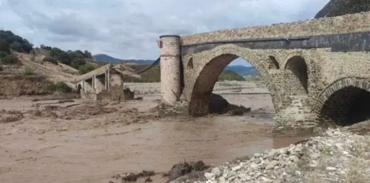 Σύμφωνα με τοπικά ΜΜΕ, το ιστορικό γεφύρι της Σαρακίνας στην Καλαμπάκα, δεν άντεξε τον μεγάλο όγκο νερού από την κακοκαιρία Daniel και ένα μέρος του κατέρρευσε.