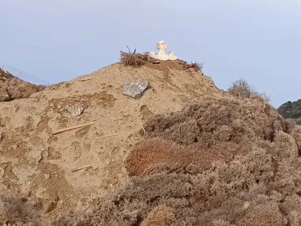 Αντιδράσεις προκάλεσε η εικόνα με το θαμμένο στο χώμα εκκλησάκι στη βίλα στην παραλία Φωκός, στη Μύκονο. Το συγκεκριμένο οίκημα ήταν στην κατοχή του Αντώνη Ρέμου και πληροφορίες αναφέρουν πως αγοράστηκε από επιχειρηματία.
