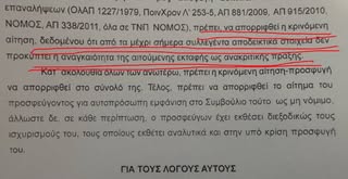 «Απορρίπτει αίτημα εκταφής, καθόσον τούτο συνδέεται με τον ισχυρισμό μερίδας διαδίκων ότι στην εμπορική αμαξοστοιχία μεταφερόταν παράνομα ποσότητα διαλυτών – υδρογονανθράκων και η εκταφή ζητείται να λάβει χώρα προς επίρρωση του ισχυρισμού αυτού.