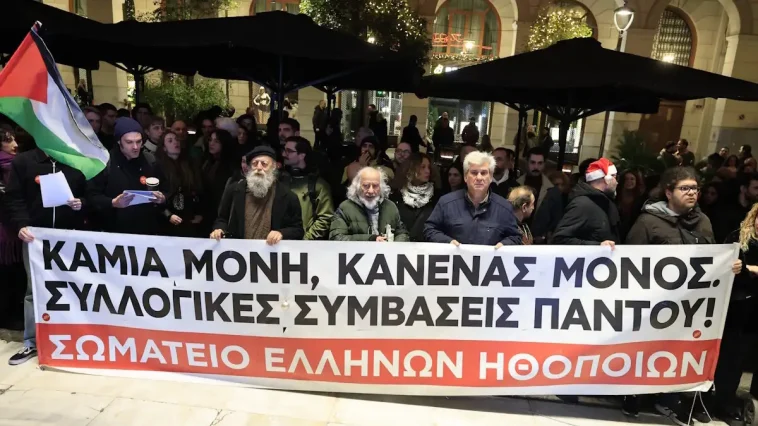 Μία διαφορετική «παράσταση» στήθηκε το βράδυ του Σαββάτου (27.12.2025) στη συμβολή των οδών Βουκουρεστίου και Πανεπιστημίου. Οι ηθοποιοί, αντί για το σανίδι, βγήκαν στους δρόμους, προχωρώντας σε απεργία.