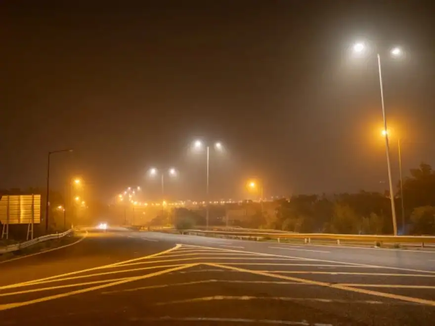 Το neakriti κατέγραψε εικόνες από τον Βόρειο Οδικό Άξονα Κρήτης, όπου τα φώτα των οχημάτων, σε συνδυασμό με την πυκνή σκόνη που αιωρούνταν στον αέρα, δημιουργούσαν σκηνές που θύμιζαν θρίλερ.