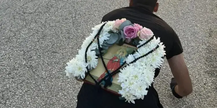 Συγκλόνισε νεαρός με την πίστη του που πήγε από την Σύρο για να προσκυνήσει το ιερό λείψανο της Αγίας Μαρίνας και μετέβη από τον οικισμό Ιμέρου μέχρι την εκκλησία με τα γόνατα και μεταφέροντας στην πλάτη του την εικόνα της Αγίας Μαρίνας, υλοποιώντας το προσωπικό του τάμα.