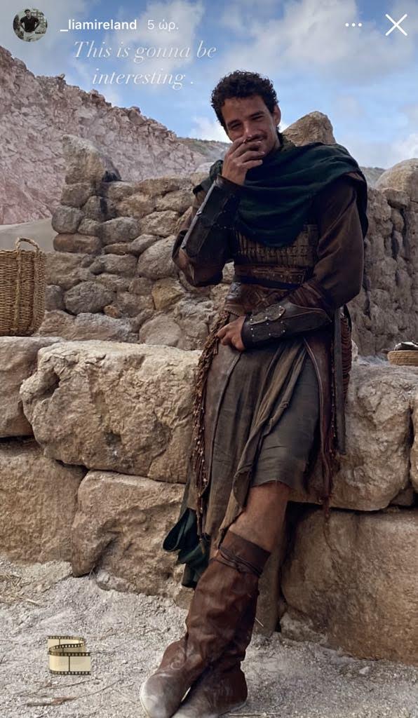 Ανέβασε για λίγη ώρα μια φωτογραφία από γύρισμα. Φορά κάπα και αρχαιοελληνικά ρούχα και γράφει «Αυτό θα έχει ενδιαφέρον…» και κοιτά το φακό χαμογελώντας πονηρά.