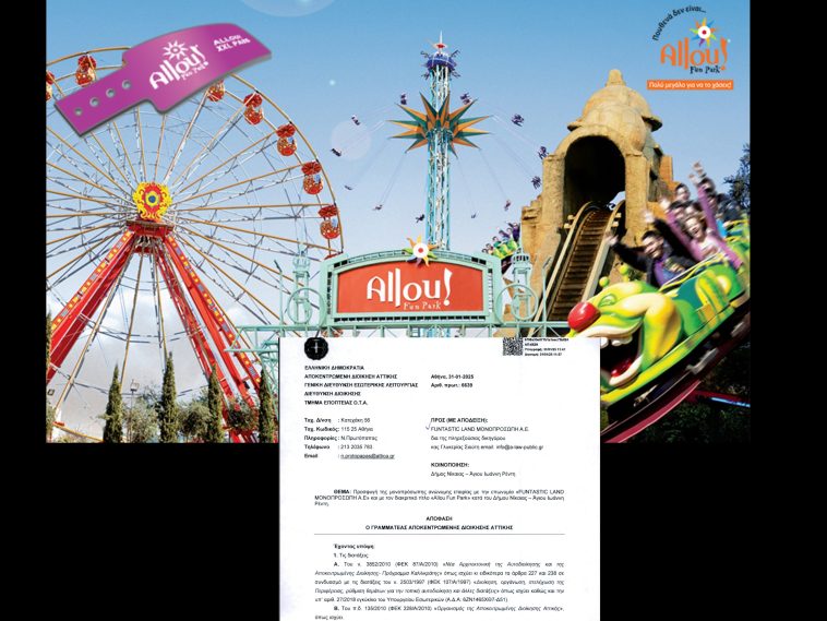 Έχοντας συμπληρώσει 50 ημέρες από το κλείσιμο του Allou! Fun Park, η Αποκεντρωμένη Διοίκηση ήρθε να ακυρώσει την απόφαση του Δήμου Αγ.Ιωάννη Ρέντη – Νίκαιας, κρίνοντας την παράνομη, καλώντας τη Δημοτική Αρχή να συμμορφωθεί άμεσα!