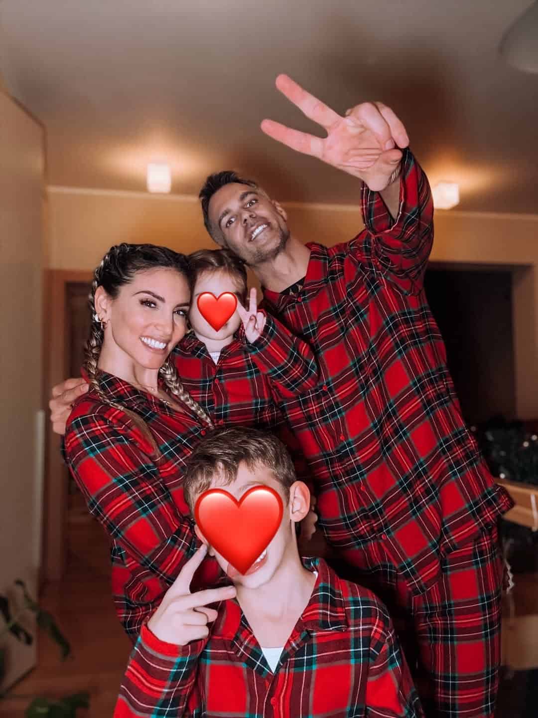 Στη φωτογραφία που ξεχώρισε, η Αθηνά Οικονομάκου ποζάρει μαζί με τον σύντροφό της, Μπρούνο Τσερέλα, και τα δύο της παιδιά, Μάξιμο και Σιέννα με το απόλυτο matchy-matchy look τους. Οι τέσσερις φορούσαν τις ίδιες κόκκινες καρό πιτζάμες, ποζάροντας αγκαλιασμένοι και χαμογελαστοί μπροστά στο χριστουγεννιάτικο δέντρο.