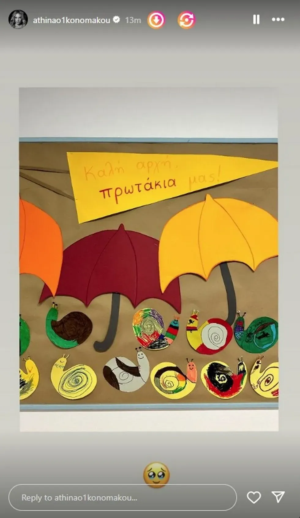 Μάλιστα, η Αθηνά Οικονομάκου πήγε την μικρή της, Σιέννα στον παιδικό σταθμό και την απαθανάτισε να κρατά την τσάντα της και σχολίασε: «Καλή αρχή σε όλα τα παιδάκια και τους εκπαιδευτικούς! Καλή δύναμη σε όλους τους γονείς»