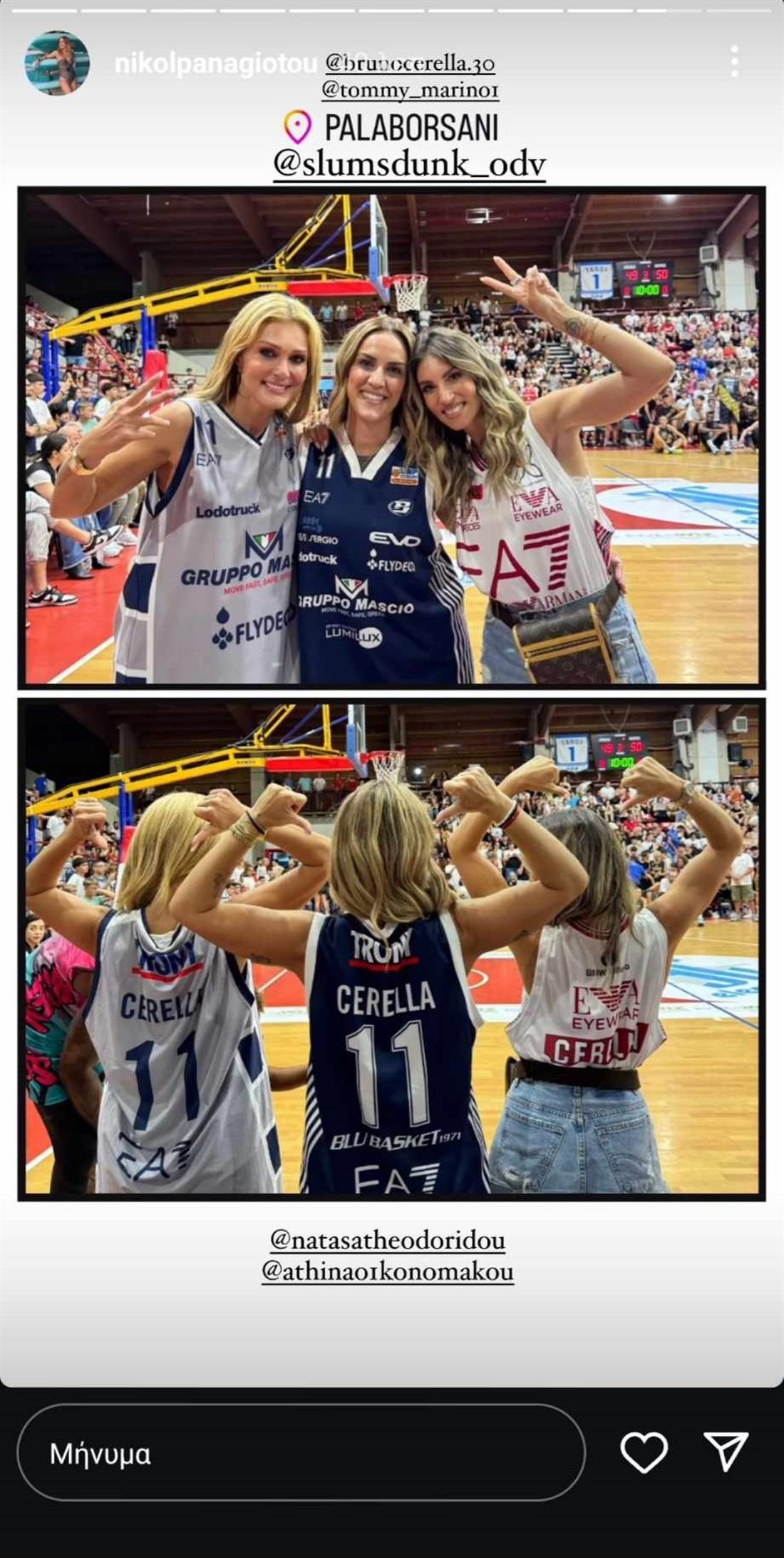 - Μάλιστα, χθες 28 Ιουνίου δημοσίευσε και την πρώτη φωτογραφία φορώντας τη φανέλα με το όνομά του.Η Αθηνά βρέθηκε σε έναν αγώνα μπάσκετ μαζί με την Νατάσα Θεοδωρίδου και τη Νικόλ Παναγιώτου και οι τρεις τους πόζαραν φορώντας φανέλα με το όνομα του Τσερέλα.