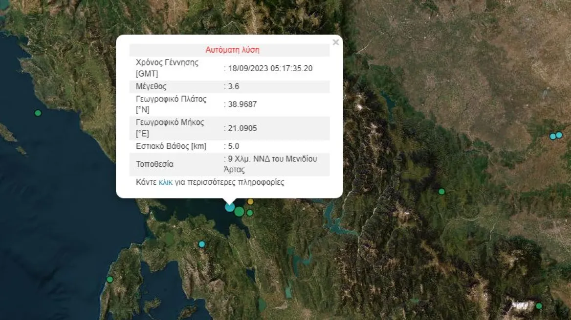 Σεισμός ΤΩΡΑ 3,6 Ρίχτερ κοντά στην Άρτα…