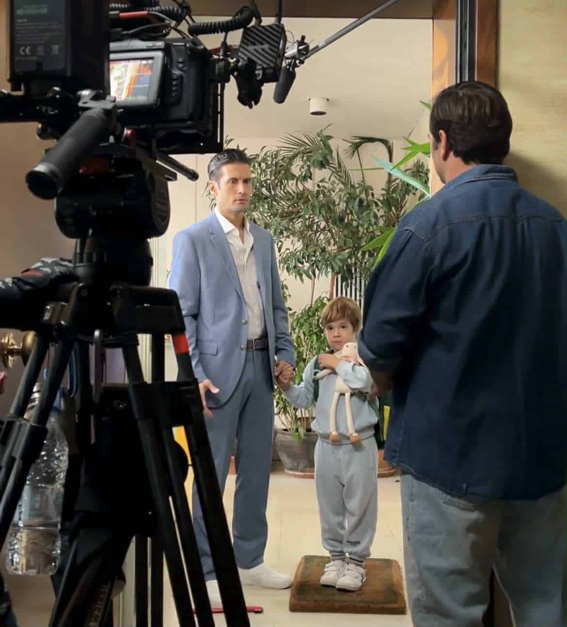 Σε μια backstage σκηνή από τα γυρίσματα, τον βλέπουμε με τον τηλεοπτικό του γιο, με τον οποίο δείχνει πώς του ταιριάζει απόλυτα.
