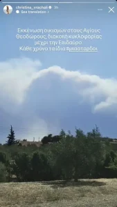 Tην οργή της εξέφρασε μέσα από μία σειρά αναρτήσεών της στο Instagram η δημοσιογράφος Χριστίνα Βραχάλη, για όσα συμβαίνουν κατά την αδυναμία διαχείρισης των σημερινών πυρκαγιών στο Λουτράκι.