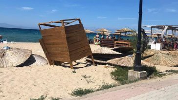 Ένας ξαφνικός ανεμοστρόβιλος «χτύπησε» το πρωί την παραλία των Νέων Φλογητών στη Χαλκιδική.