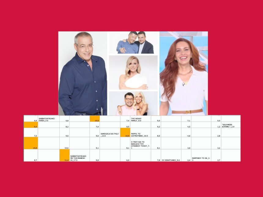 Η μάχη της πρωινής ζώνης το Σαββατοκύριακο είχε ξεκάθαρους νικητές αλλά και ορισμένους που είδαν τα νούμερα να… πονάνε. Τα στοιχεία τηλεθέασης δείχνουν ότι δύο εκπομπές χαμογελούν, ενώ σε άλλους σταθμούς επικρατεί έντονος προβληματισμός. Στην κορυφή της ενημέρωσης παραμένει ο Νίκος Μάνεσης στον Alpha.