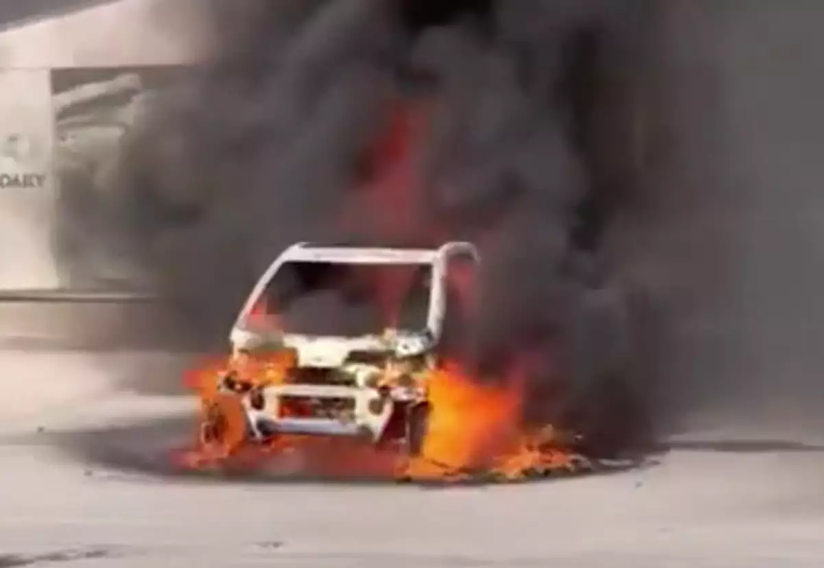 Επί τόπου έσπευσαν τέσσερεις πυροσβέστες με δύο οχήματα, οι οποίοι διαπίστωσαν ότι το όχημα που είχε αρπάξει φωτιά ήταν έξω από επιχείρηση σούπερ μάρκετ.