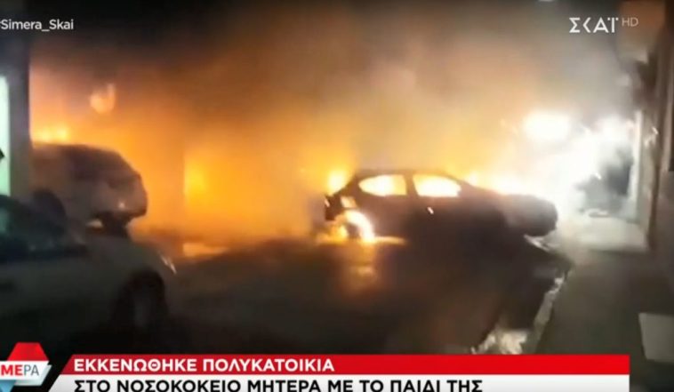 Εκεί βρίσκονταν σταθμευμένα οχήματα, με αποτέλεσμα να καούν ολοσχερώς τέσσερις μοτοσικλέτες και ένα αυτοκίνητο.