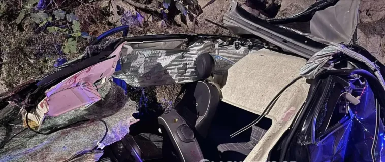 Η πρόσκρουση ήταν τόσο σφοδρή που είχε ως αποτέλεσμα να καταστραφεί ολοσχερώς η οροφή του αυτοκινήτου και να εκτοξευτεί μέτρα μακριά η πόρτα του οδηγού.