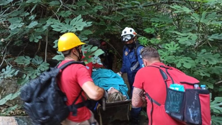 Ολοκληρώθηκε με επιτυχία η επιχείρηση διάσωσης τραυματισμένης γυναίκας από δύσβατο σημείο στα Γλυκά Νερά Σφακίων, στην Κρήτη.