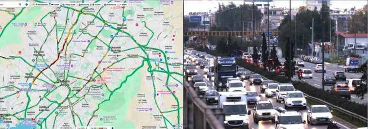 Ίδια εικόνα επικρατεί και στην άνοδο της Λεωφόρου Κηφισίας από το ύψος της Κατεχάκη προς την Αγία Βαρβάρα.