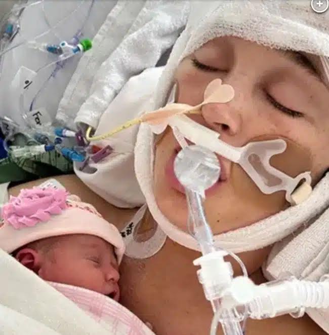 Πλέον, νοσηλεύεται στην εντατική, δίνοντας μάχη για να κρατηθεί στη ζωή. Η οικογένειά της έχει ξεκινήσει μια εκστρατεία οικονομικής στήριξης μέσω του GoFundMe, ώστε να καλυφθούν τα ιατρικά της έξοδα, αλλά και οι ανάγκες του νεογέννητου κοριτσιού της.