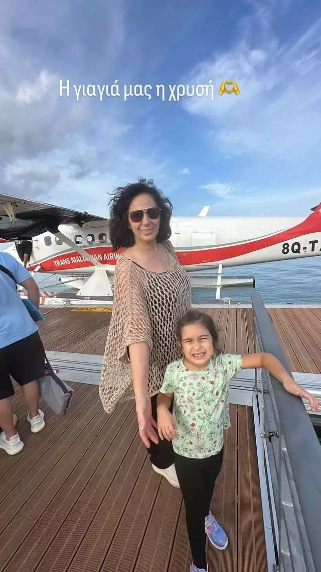 Γιαγιά και εγγονή πόζαραν μαζί στον φακό λίγο πριν μπουν στο υδροπλάνο για να μεταφερθούν στο νησί τους, με την Ελένη Χατζίδου να γράφει: «Η γιαγιά μας η χρυσή».