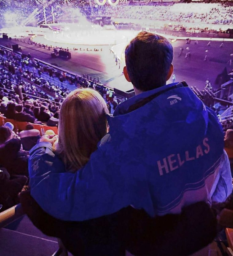Η Μαρί Σαντάλ βρέθηκε στην τελετή έναρξης των Χειμερινών Ολυμπιακών Αγώνων Milano-Cortina 2026 στο στάδιο «Σαν Σίρο», συνοδευόμενη από τον σύζυγό της Παύλο.