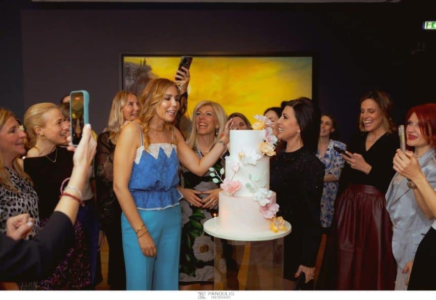 Η βραδιά ξεκίνησε με περιήγηση σε έργα Πικάσο και Βαν Γκογκ – γιατί όταν έχεις τέτοιο χώρο, το εκμεταλλεύεσαι. Και συνέχισε με γεύσεις υψηλής γαστρονομίας: σφυρίδα, εκλεκτά πιάτα και μια τούρτα που… έκλεψε την παράσταση. Γέλια, χαλαρότητα και networking υψηλού επιπέδου. Γιατί εδώ δεν είναι απλά φίλες. Είναι… δίκτυο.