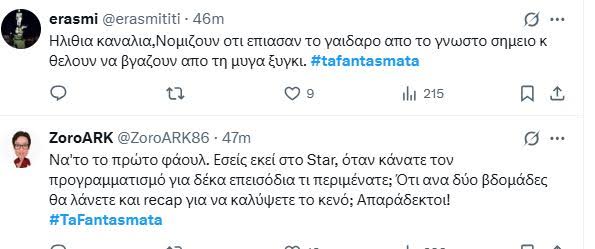 Την μεγάλη απογοήτευσή τους για το star εκφράζουν οι τηλεθεατές που έχουν λατρέψει ήδη τα «Φαντάσματα».