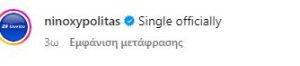 Δεν ήταν απλά κρίση. Ο Νίνο και η Ζόζεφιν χώρισαν και μάλιστα οριστικά. Ο τραγουδιστής χτες επιβεβαίωσε τις φήμες με μια ανάρτησή του. Προχωράει στη Ρόδο, με τα χέρια ψηλά και γράφει «Ελεύθερος και επίσημα».