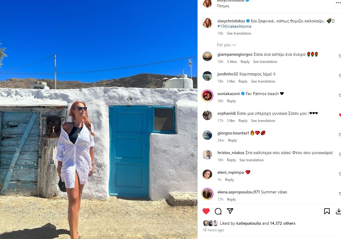Η Σίσσυ Χρηστίδου δημοσίευσε μία εντυπωσιακή throwback φωτογραφία της με μαγιό από τις διακοπές της και οι followers της την αποθέωσαν στο Instagram. Η παρουσιάστρια της εκπομπής, Χαμογέλα και πάλι εδώ και ένα χρόνο κατάφερε να αλλάξει τη σιλούετα της και η αλλαγή αυτή είναι θεαματική! Πολλοί από τους followers της τής έγραψαν: «Είσαι υπέροχη!», «Κουκλάρα», «Είσαι μια υπέροχη γυναίκα Σίσσυ μου», «Στα καλύτερα σου είσαι! Φτου σου γυναικάρα!», «Απλά, λιτά και όμορφα!!!», «Πανέμορφη», «Γυναικάρα» και άλλα τέτοιου τύπου σχόλια έγραψαν οι διαδικτυακοί φίλοι της παρουσιάστριας και την αποθέωσαν! Η Σίσσυ πράγματι είναι στα καλύτερά της και η ίδια είχε αποκαλύψει για την εντυπωσιακή αλλαγή στην εμφάνισή της: «Αν ανήκεις στην κατηγορία των ανθρώπων που δίνουν μάχη με τα κιλά τους εγώ ανήκω σε αυτή την κατηγορία ξεκινώντας από τις εγκυμοσύνες μου που στον Φίλιππο πήρα 40 κιλά, στον Μιχαήλ 30 και μετά σε δύσκολες περιόδους της ζωής μου.