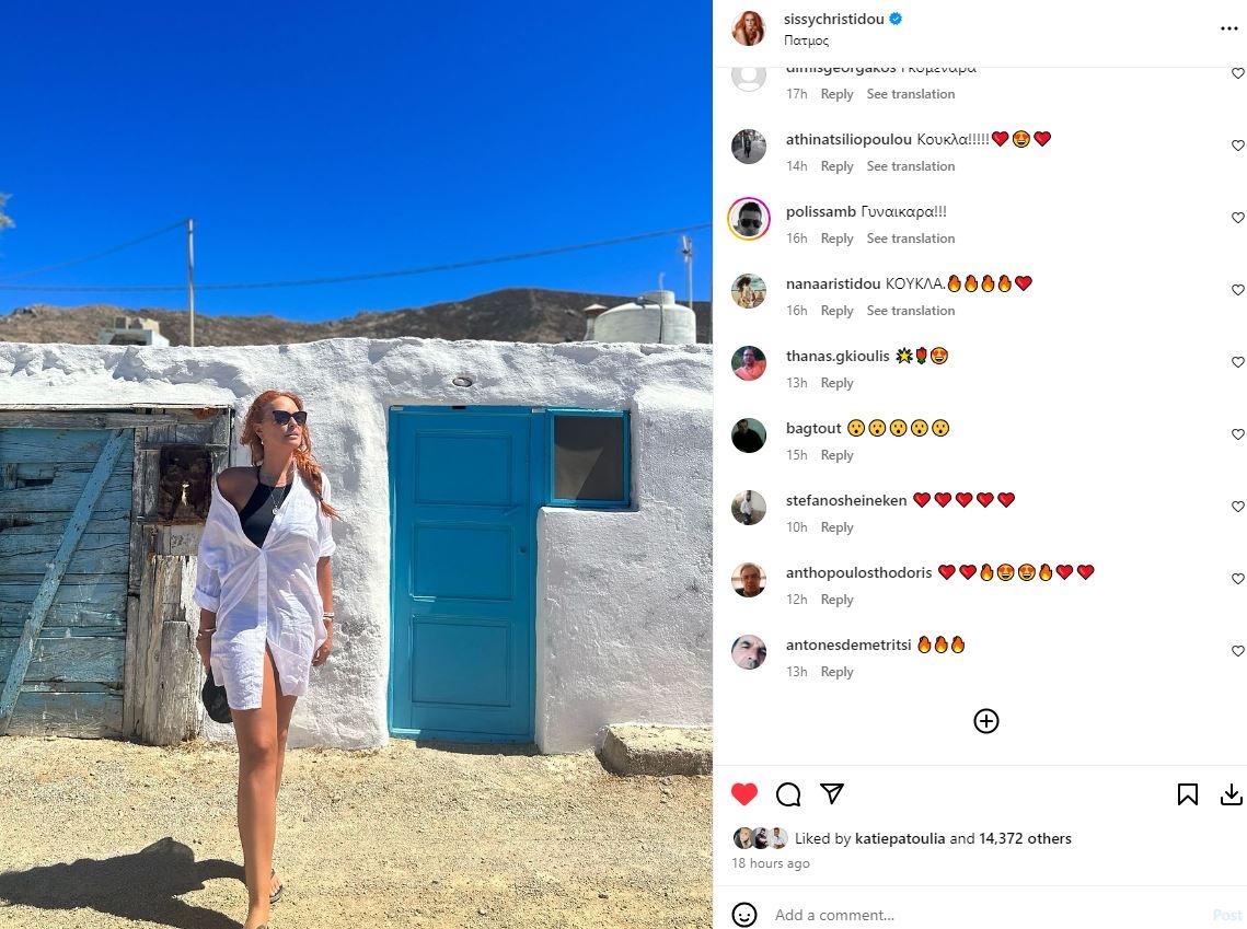 Η Σίσσυ Χρηστίδου δημοσίευσε μία εντυπωσιακή throwback φωτογραφία της με μαγιό από τις διακοπές της και οι followers της την αποθέωσαν στο Instagram. Η παρουσιάστρια της εκπομπής, Χαμογέλα και πάλι εδώ και ένα χρόνο κατάφερε να αλλάξει τη σιλούετα της και η αλλαγή αυτή είναι θεαματική! Πολλοί από τους followers της τής έγραψαν: «Είσαι υπέροχη!», «Κουκλάρα», «Είσαι μια υπέροχη γυναίκα Σίσσυ μου», «Στα καλύτερα σου είσαι! Φτου σου γυναικάρα!», «Απλά, λιτά και όμορφα!!!», «Πανέμορφη», «Γυναικάρα» και άλλα τέτοιου τύπου σχόλια έγραψαν οι διαδικτυακοί φίλοι της παρουσιάστριας και την αποθέωσαν! Η Σίσσυ πράγματι είναι στα καλύτερά της και η ίδια είχε αποκαλύψει για την εντυπωσιακή αλλαγή στην εμφάνισή της: «Αν ανήκεις στην κατηγορία των ανθρώπων που δίνουν μάχη με τα κιλά τους εγώ ανήκω σε αυτή την κατηγορία ξεκινώντας από τις εγκυμοσύνες μου που στον Φίλιππο πήρα 40 κιλά, στον Μιχαήλ 30 και μετά σε δύσκολες περιόδους της ζωής μου.