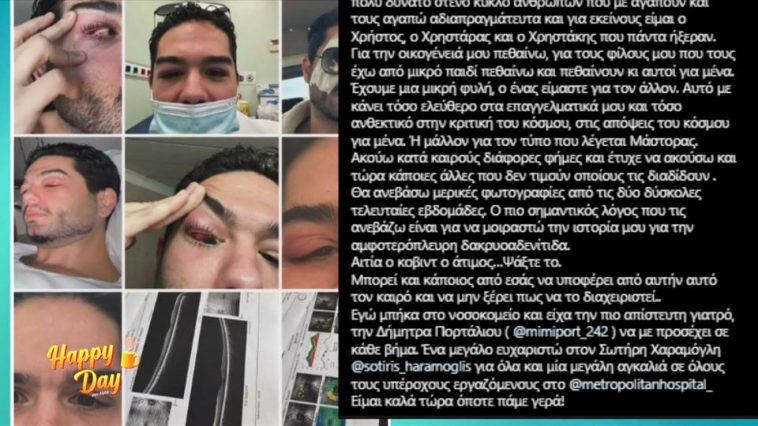 - Σύμφωνα με τις πληροφορίες μας ο Χρήστος βρέθηκε σε ιδιωτικό νοσοκομείο στο Νέο Φάληρο και καθ’ όλη την διάρκεια των εξετάσεων φορούσε μαύρα μεγάλα γυαλιά. Και ο λόγος είναι πλέον εμφανής.