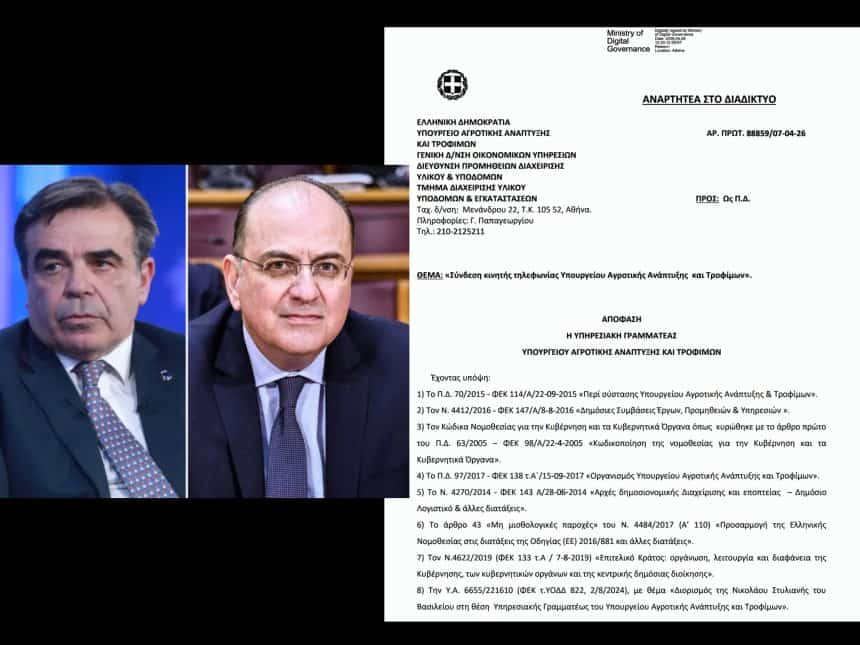 Δεν θέλει και πολλή έρευνα για να καταλάβει κανείς γιατί ο κόσμος έχει χάσει την εμπιστοσύνη του. Μια βόλτα στη Διαύγεια αρκεί. Εκεί που υποτίθεται υπάρχει διαφάνεια, πέφτεις πάνω σε αποφάσεις που σηκώνουν… φρύδι. Στο Υπουργείο Αγροτικής Ανάπτυξης και Τροφίμων, με το καλημέρα της νέας ηγεσίας, εγκρίνονται εταιρικά κινητά.