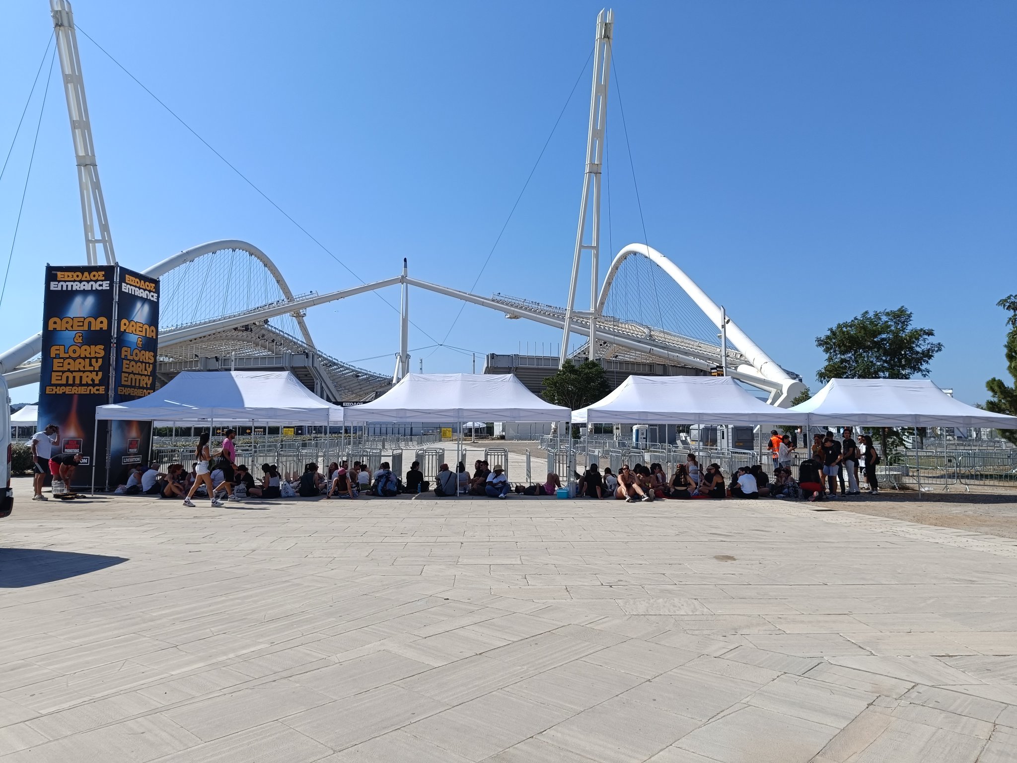 Σε λίγες ώρες ξεκινά η μεγάλη συναυλία των Coldplay στην Αθήνα, που είναι sold out. Το παγκοσμίου φήμης συγκρότημα έρχεται απόψε και αύριο στην Αθήνα, για να γεμίσει το Ολυμπιακό Στάδιο με εκατοντάδες χιλιάδες θαυμαστές. Αν και οι πόρτες του ΟΑΚΑ ανοίγουν στις 17:00 και οι Colplay αναμένεται να βγουν στη σκηνή λίγο μετά τις 21:00, οι φαν έχουν αρχίσει ήδη να σχηματίζουν ουρές έξω από το στάδιο. Παρά τις υψηλές θερμοκρασίες, οι φαν του θρυλικούς συγκροτήματος που θα παρακολουθήσουν τη συναυλία από την αρένα, περιμένουν από νωρίς το πρωί στην αναμονή, έτσι ώστε όταν ανοίξουν οι πόρτες, να διεκδικήσουν μια καλή θέση όσο πιο κοντά γίνεται στη σκηνή. Ρεπόρτερ του «Στούντιο με Θέα» συνάντησε παρέες Ολλανδών και Ελλήνων που έχουν εφοδιαστεί με τα απαραίτητα τρόφιμα και νερά και περιμένουν υπομονετικά. Φορούν καπέλα, γυαλιά ηλίου αλλά και τα γκλίτερ στο πρόσωπό τους και έχουν πάρει θέση στην ουρά ενώ οι περισσότεροι κάθονται κάτω. «Είναι η δεύτερη φορά που πάμε και είπαμε να το ζήσουμε κοντά στη σκηνή. Καπελάκι, γυαλάκι, αντηλιακό, κομπλέ» είπε μια θαυμάστρια