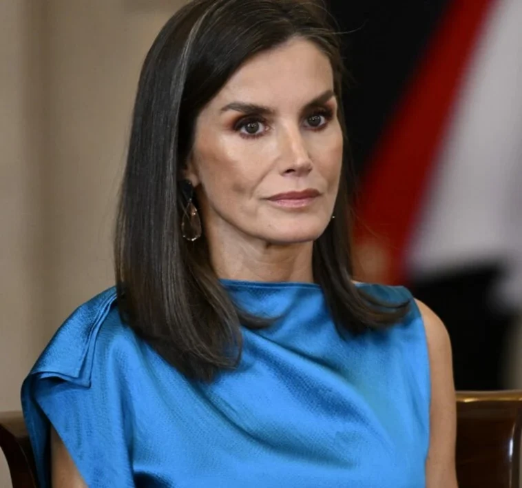 - Στις εκδηλώσεις που λαμβάνουν χώρα για τον εορτασμό της δέκατης επετείου από την ανακήρυξη του Φελίπε ΣΤ’ την είδαμε να φοράει ένα έντονο μπλε σατέν σύνολο. Ήταν ένα σετ δύο κομματιών, της ισπανικής μάρκας Maksu, αποτελούμενο από αμάνικο τοπ και ασύμμετρη φούστα. Το είχε ήδη φορέσει στο παρελθόν, στα βραβεία ABC Journalism Awards 2023.
