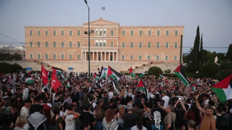Συγκεντρώσεις για την Παλαιστίνη πραγματοποιήθηκαν σε πάνω από 70 σημεία της χώρας . Η κεντρική διαδήλωση έγινε με μεγάλη συμμετοχή, στο Σύνταγμα, με βασικό σύνθημα «σταματήστε τη γενοκτονία».